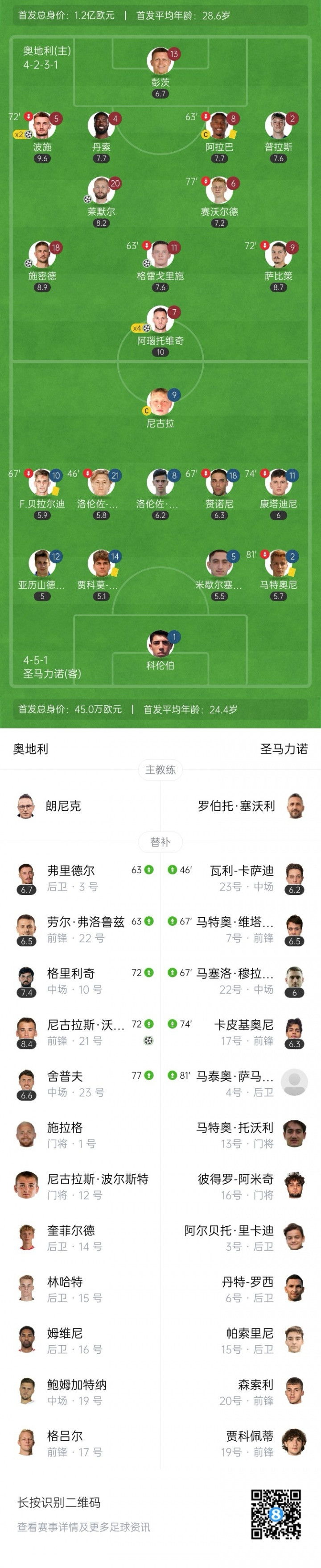 直播吧10月10日讯世预赛欧洲区小组赛H组第7轮,奥地利10-0大胜圣马力诺,本场比赛奥地利首发11人除门将外全部参与进球!奥地利FIFA排名第22,圣马力诺FIFA排名倒数第一。