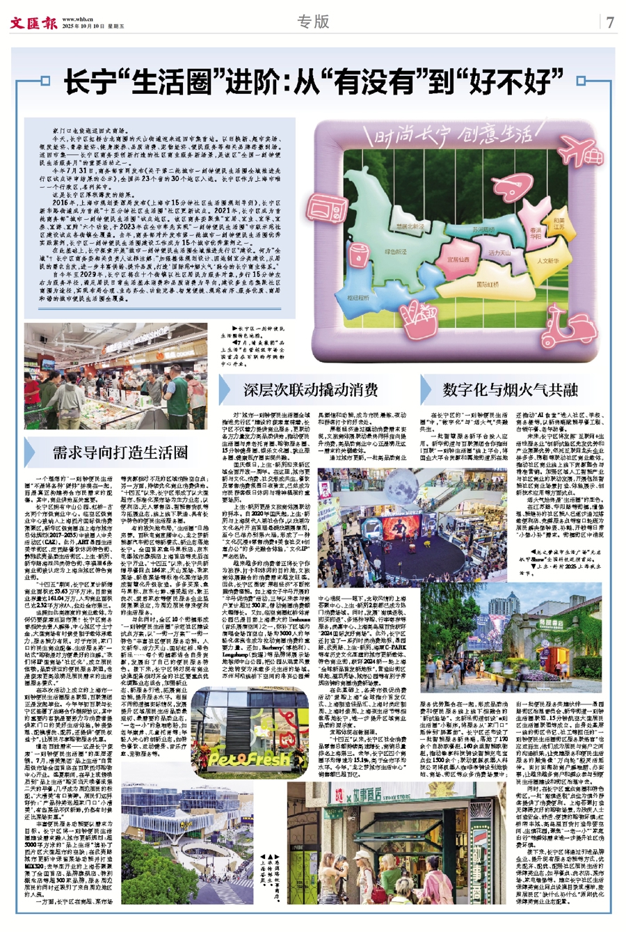 通过城市更新,一批高品质商业中心涌现——眼下,北欧风情的上海荟聚中心、上生·新所2期都已成为热门消费场域。同时,发展“离境退税、即买即退”、多语种导购、行李寄存等服务,尚嘉中心、上海高岛屋百货获评“2024国际友好商场”。此外,长宁区还打造了一系列时尚消费地标,愚园路、武夷路、上生·新所、海粟C-PARK等有历史文化底蕴的城市更新载体、特色商业街,获评2024新一轮上海“全球新品首发新地标”,营造出街区绿地、屋顶秀场、城市公园等有别于常规店铺的商圈消费新场景。
